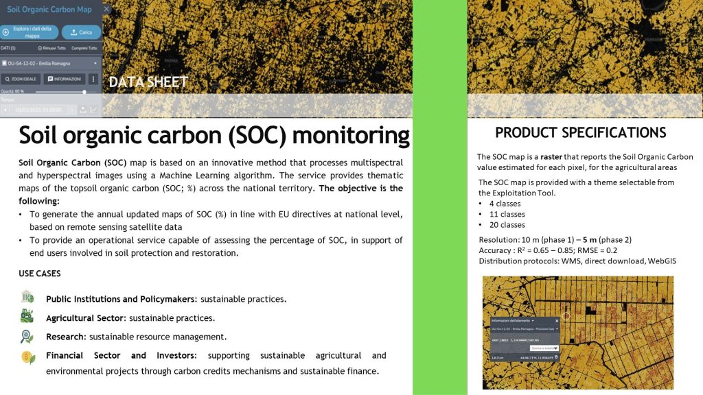 Euro.Soft S.r.l. e Latitudo 40 S.r.l. sviluppano mappe tematiche di stima del SOC mediante l’applicazione di algoritmi di intelligenza artificiale a dati di Osservazione della Terra provenienti da piattaforme satellitari. Nell’ambito del progetto AgrilivNetwork, l’attività di stima del SOC nei terreni destinati ai living lab pilota assume valore essa stessa di living lab, consentendo di valutare il potenziale di sequestro del carbonio, monitorare lo stato qualitativo del suolo e supportare la definizione di strategie agricole adattive e sostenibili.
